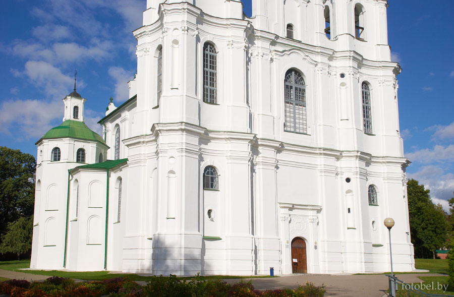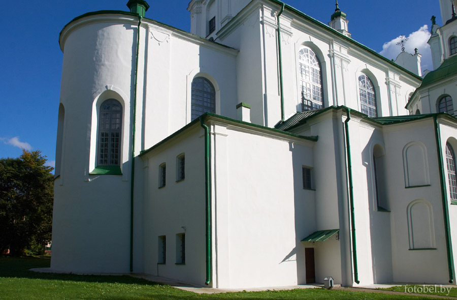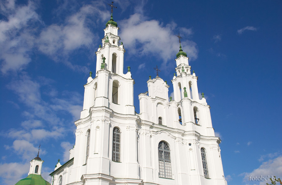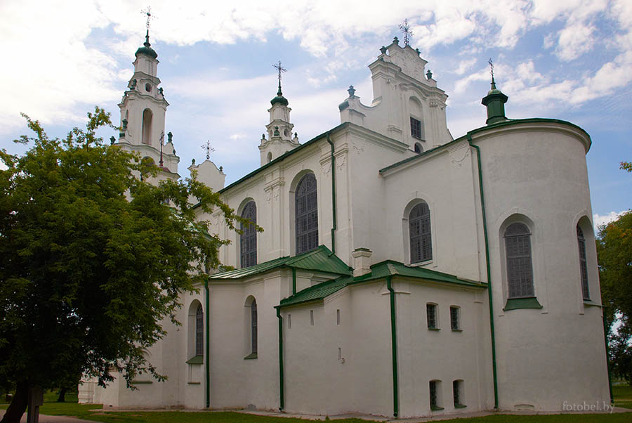 Софийский собор — один из самых древних храмов на территории Беларуси. Возводился на месте деревянного в середине 11 века князем Всеславом Брачиславовичем как главный храм в Полоцком княжестве. Софийский собор кроме своего главного религиозного предназначения являлся и крупным культурно-просветительским центром, где принимались важнейшие государственные решения, хранилась казна, служил усыпальницей полоцких князей. В конце 16 века храм перешёл к униатам, в начале 17 века пострадал от пожала, но вскорости был восстановлен с некоторыми изменениями. Но больше всего испытаний собор увидел во время Северной войны — Петром I и его окружением были убиты священники, храм разграблен, превращён в пороховой склад и 1 мая 1710 года был взорван. На месте руин был построен новый Софийский собор в стиле барокко, каким его можем видеть и в настоящее время. В некоторых частях храма можно рассмотреть чудом сохранившиеся остатки фресок 11 века, фрагменты древней кладки и мощный фундамент, которые вам покажут сотрудники музея истории архитектуры Софийского собора. В 1985 г. здесь открылся концертный зал камерной музыки, в котором проводится ежегодный международный фестиваль органной музыки «Званы Сафіі».